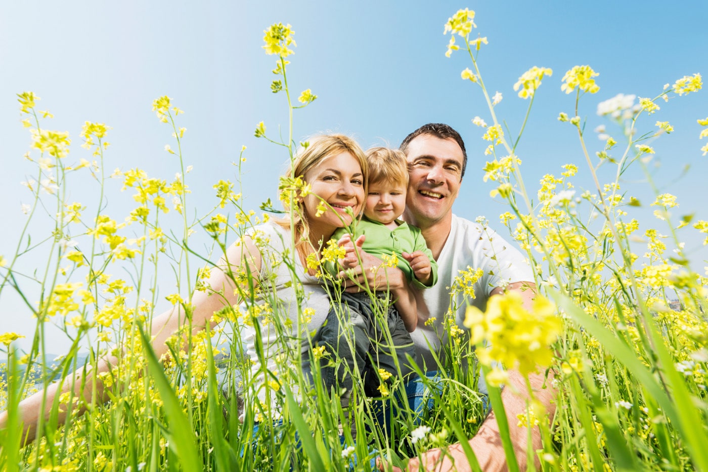 Happy Family Among Wildflowers.